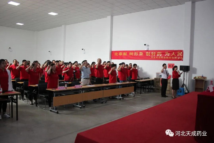 黨總支副書記王顥發(fā)表《永遠(yuǎn)跟黨走,啟程新航程》主題講話,他在講話中指出:在紀(jì)念建黨100周年之際,開展評(píng)選優(yōu)秀共產(chǎn)黨員和優(yōu)秀黨務(wù)工作者活動(dòng),展示新時(shí)期共產(chǎn)黨人的良好形象,對(duì)于繼承和發(fā)揚(yáng)黨的優(yōu)良傳統(tǒng)和作風(fēng),樹立典型,弘揚(yáng)正氣,振奮精神,進(jìn)一步增強(qiáng)公司黨組織的創(chuàng)造力、凝聚力和戰(zhàn)斗力,充分發(fā)揮共產(chǎn)黨員的先鋒模范作用,激勵(lì)全公司廣大共產(chǎn)黨員在深入實(shí)施公司“要么第一、要么唯一”的戰(zhàn)略,踐行“制好藥,為人民”的經(jīng)營(yíng)宗旨,推進(jìn)天成藥業(yè)高質(zhì)量發(fā)展,促進(jìn)天成人在生產(chǎn)經(jīng)營(yíng)工作中奮勇爭(zhēng)先,建功立業(yè),具有十分重要的意義。