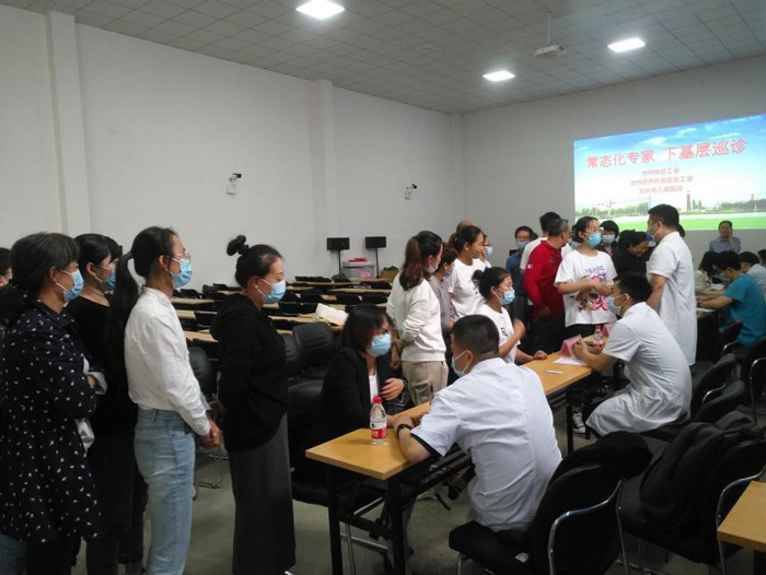 活動(dòng)開始,滄州市總工會(huì)田瑩副科長(zhǎng)發(fā)表講話,她指出,滄州市總工會(huì)通過建設(shè)“職工健康生活室”,聯(lián)合滄州市人民醫(yī)院定期下基層開展健康大課堂、義診等活動(dòng),為職工送去科學(xué)的營(yíng)養(yǎng)保健指導(dǎo),對(duì)患病的職工提出相應(yīng)的治療建議,既滿足了職工健康的新需求,又使之成為了關(guān)心關(guān)愛職工健康的新舉措。她強(qiáng)調(diào)“常態(tài)化專家下基層巡診”活動(dòng)將會(huì)持續(xù)搞下去,讓職工參與度更高,惠及更多的職工。