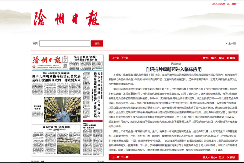 據(jù)河北天成藥業(yè)股份有限公司常務(wù)副總經(jīng)理王顥介紹,注射用紫杉醇(白蛋白結(jié)合型)作為經(jīng)典的化療藥物,在治療多種實體瘤中發(fā)揮著重要作用,特別是在乳腺癌治療中有顯著療效。然而,長久以來,此類藥物價格高昂。為了讓腫瘤患者用上可負擔(dān)得起的高品質(zhì)抗腫瘤藥,2014年,天成藥業(yè)抽調(diào)專業(yè)技術(shù)研發(fā)團隊,成立全資子公司——河北道恩藥業(yè)有限公司,先后投資約3億元,打造了具備高端研發(fā)水平的復(fù)雜注射劑研發(fā)平臺,重點布局長循環(huán)脂質(zhì)體、雙載藥復(fù)方脂質(zhì)體以及白蛋白納米粒等高端復(fù)雜制劑的研發(fā)與生產(chǎn),在腫瘤靶向給藥系統(tǒng)領(lǐng)域取得了獨特的技術(shù)優(yōu)勢。通過創(chuàng)仿結(jié)合的發(fā)展模式,企業(yè)研發(fā)團隊持續(xù)對10余種具有高臨床價值的仿制藥和改良型新藥開展技術(shù)攻關(guān)。經(jīng)過多年的反復(fù)試驗,注射用紫杉醇(白蛋白結(jié)合型)成為天成藥業(yè)首款研制成功的抗腫瘤藥,并于今年1月份正式獲得國家藥品監(jiān)督管理局(NMPA)頒發(fā)上市許可批件。此款抗腫瘤藥不僅在安全性和療效上達到了國際領(lǐng)先水平,還可部分替代進口,大幅降低了腫瘤患者的治療成本。