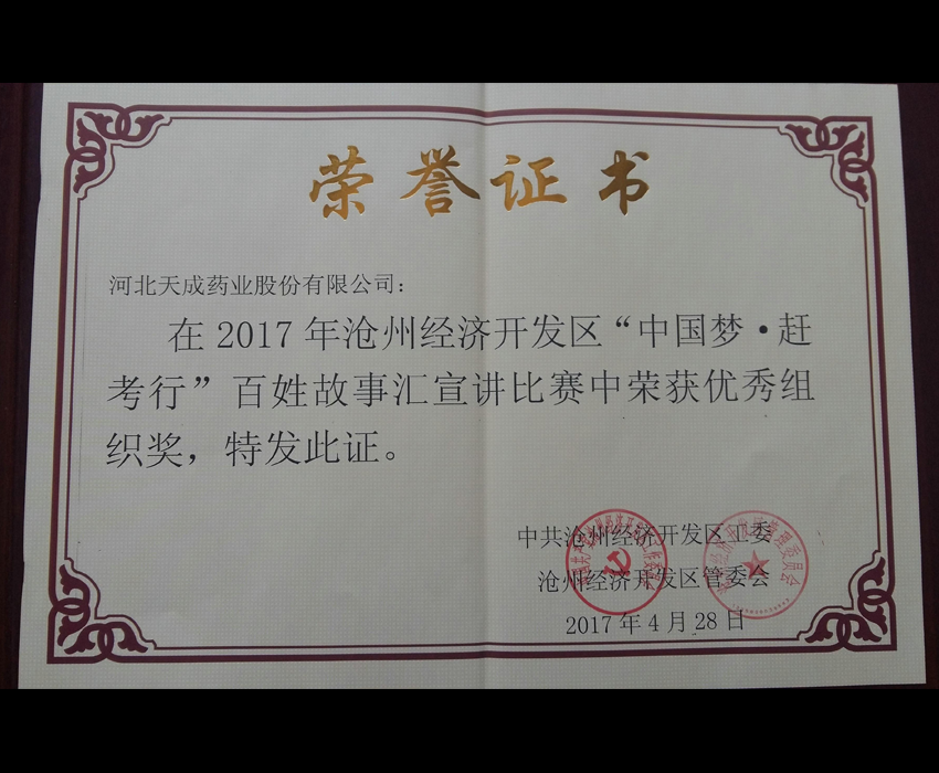 我公司被評(píng)為“優(yōu)秀組織獎(jiǎng)”