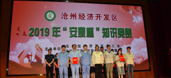 7月16日,由滄州經濟開發(fā)區(qū)總工會、滄州經濟開發(fā)區(qū)安全生產監(jiān)督管理局主辦,北京現(xiàn)代汽車有限公司滄州分公司協(xié)辦,滄州經濟開發(fā)區(qū)2019年“安康杯”知識競賽在北京現(xiàn)代滄州分公司舉行。我公司綜合部部長呂斌攜道恩藥業(yè)安全環(huán)保部李世杰、綜合部劉立紅參加此次比賽。比賽分為必答題、搶答題、風險題三個環(huán)節(jié),比賽過程中,我公司三位選手沉著冷靜、對答如流,經過激烈的角逐,取得二等獎的驕人成績。