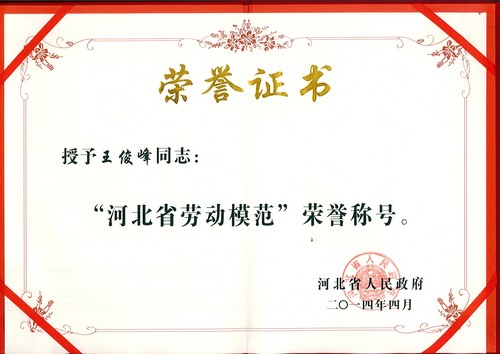 2014年4月榮獲“河北省勞動(dòng)模范”榮譽(yù)稱號(hào)